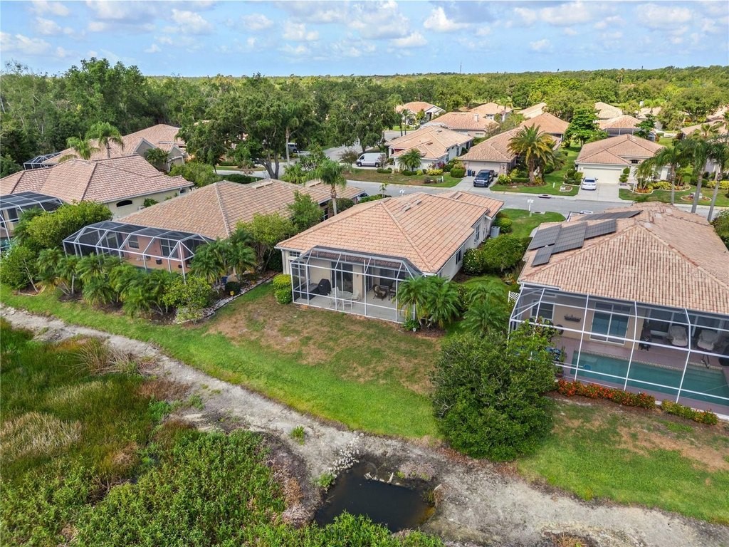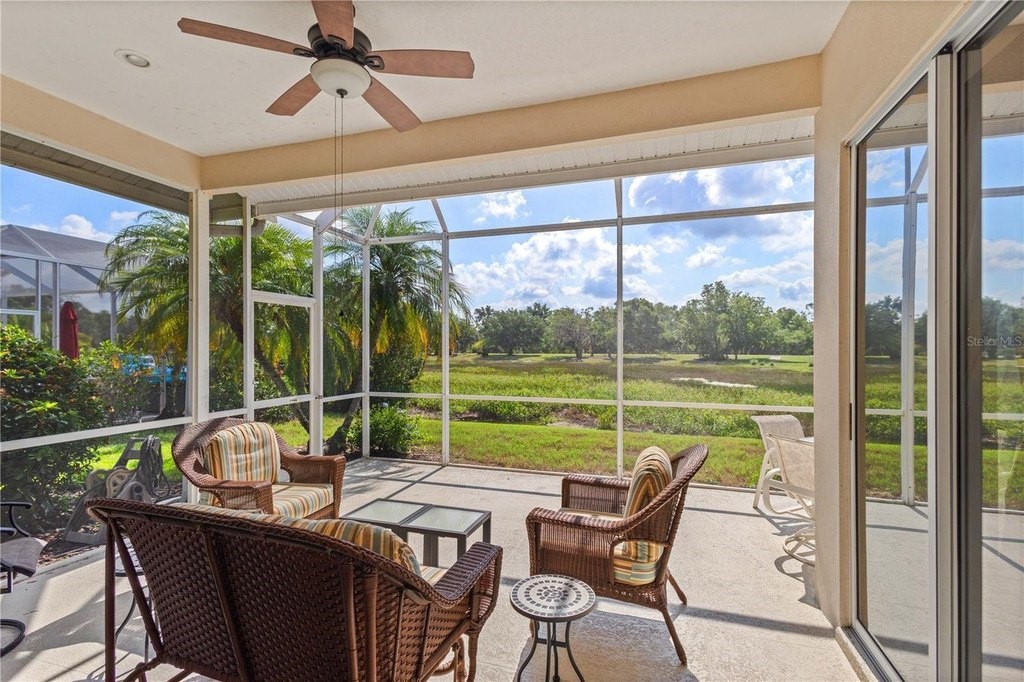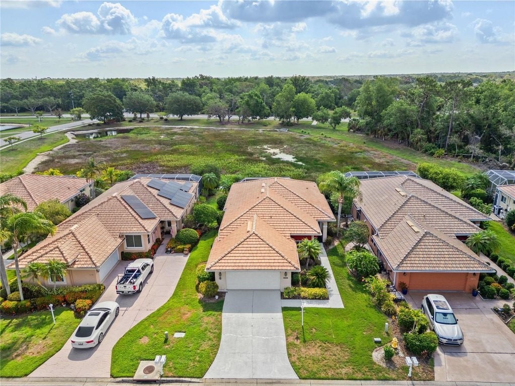 Perfectly located in the heart of River Club, this beautifully maintained home offers comfort, functionality, and peaceful pond views. As you step through the front door, you’re greeted by a welcoming foyer that flows seamlessly into the spacious living room with soaring ceilings and expansive sliding glass doors that frame the tranquil water view. Just off the entry, you’ll find a bright and flexible den—ideal for a home office, creative space, or cozy reading area. To the left, tucked away for privacy, you'll find the generously sized second bedroom and full bathroom. The living room flows effortlessly into the dining area and kitchen, creating an ideal space for entertaining or everyday living. The kitchen is bright and functional, with an island for additional storage plus a cozy breakfast nook, all while overlooking the pond and filling the home with warm, natural light. The primary suite is a peaceful retreat with beautiful views of the water, abundant natural light, and enough space to truly unwind. The en-suite bathroom features double vanities, a garden tub, large shower, and a spacious walk-in closet, creating a comfortable and relaxing environment. Step outside to the screened-in lanai—perfect for grilling, lounging, or enjoying quiet mornings as you watch the sunrise. Located near The River Club Golf Course and just minutes from Lakewood Ranch Main Street, this home blends location, lifestyle, and low-maintenance living—with no CDD fees.
